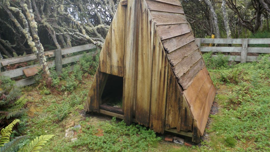 Stella Hut was constructed in 1880 to replace a castaway depot previously destroyed by fire. The hut was built by the crew of the Stella, under the command of Captain McKersie. The A-frame weatherboard hut was built either of timber found on the island from previous buildings and shipwrecks, or from supplies on board the Stella.