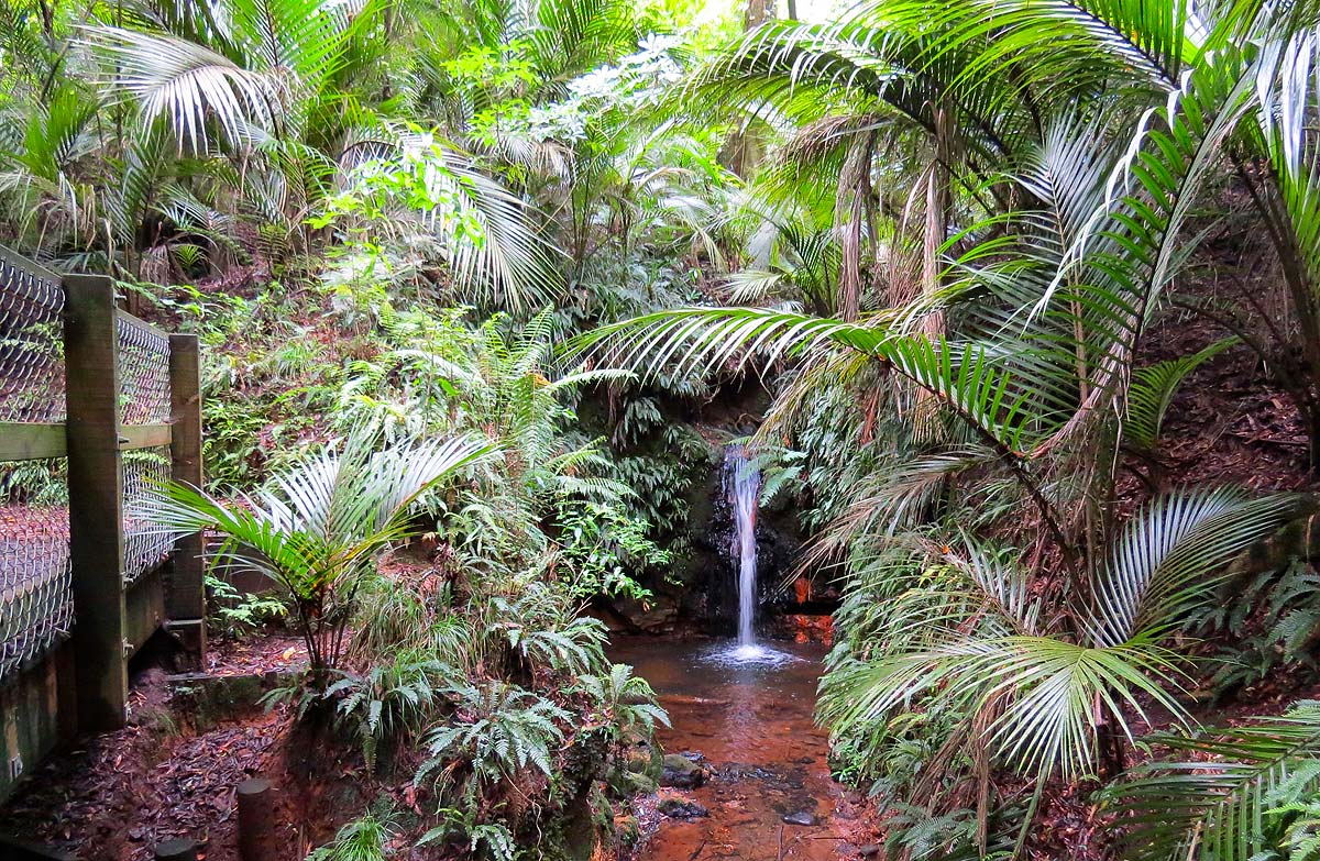 The track passes through coastal forest and goes past a scenic waterfall. Look out for the two old saw pits beside the track, which are remnants of historical logging operations.