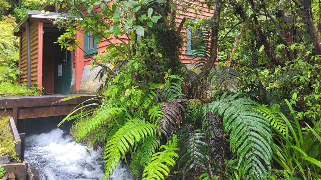Dawson Falls Power Station is located near the Dawson Falls Visitor Centre at the top end of Manaia Road. From Stratford follow Celia St, then Opunake Road before turning onto Manaia Road and driving to the end. Walk approximately 50m down Manaia Road from the visitor centre and turn left at the power station sign.