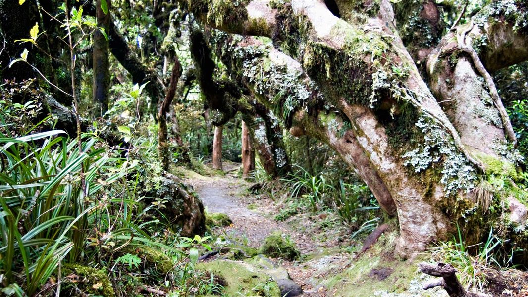 This short walk is a great introduction to the lush rainforest or 'goblin forest' of the mountain. Discover twisted kamahi trunks covered with ferns and mosses as the track descends to cross bridges over rocky mountain streams. The track then climbs to loop back to exit below the Ngāti Ruanui Stratford Mountain House.