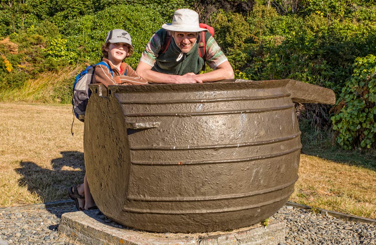 During the 1840s, much of the land was cleared for farming and sheep, goats, pigs, deer, cats, and dogs were introduced. Whales declined precipitously, and the island was given over to farming after about 1850. Today, DOC preserves many artefacts from the whaling period, such as the “trypots”, used for boiling down blubber, that can be seen on shore.