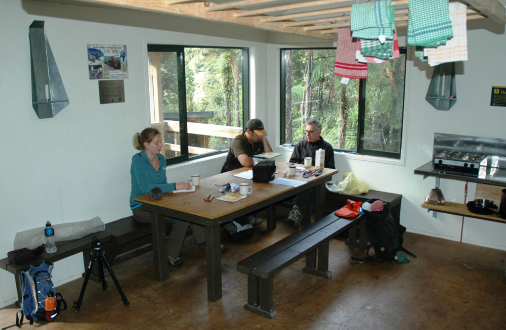 Warning: Accessing the hut requires several river crossings and should not be attempted when the river is in flood or there is sustained rainfall forecast. The Ōrongorongo River is prone to flash flooding.