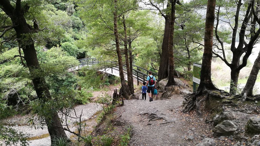 There are swimming holes at Tūrere Stream at the end of the track. You can continue past the stream to the river where there are toilets.