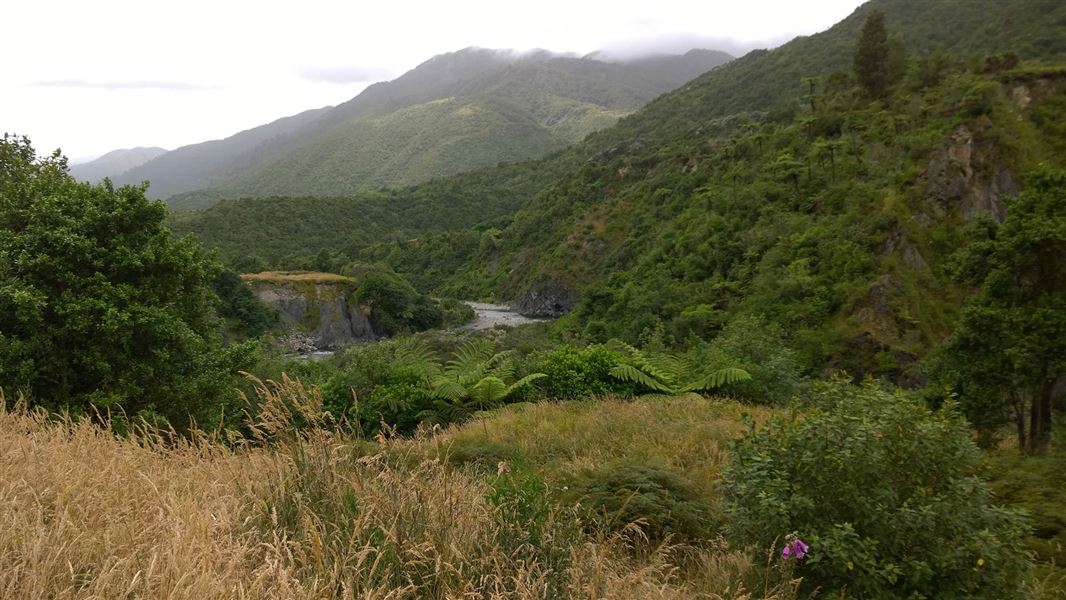 Open river terraces and regenerating bush surrounding the forks reflect the farming and sawmilling history.