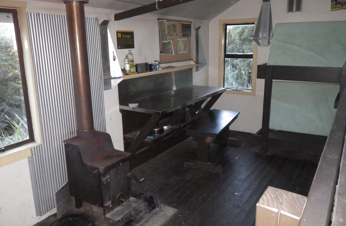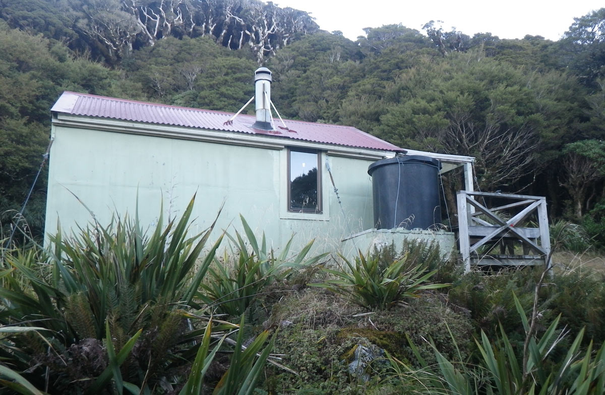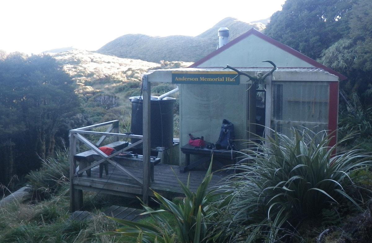 Anderson Memorial Hut is located between Junction Knob (1375 m) and Kahiwiroa peak (1320 m) and is part of the Main Range hut network. It is nestled in bush, but there are good views about 200 m north of the hut.It was built in 1978, in large part using materials recovered from the dismantled Mid-Otaki Hut.