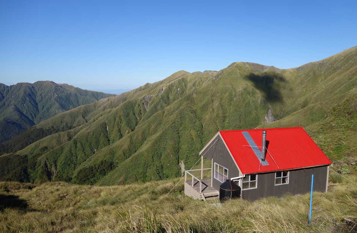 Tarn Ridge Hut is located below Girdlestone (1546 m). It's an important overnight shelter on the Northern Crossing.