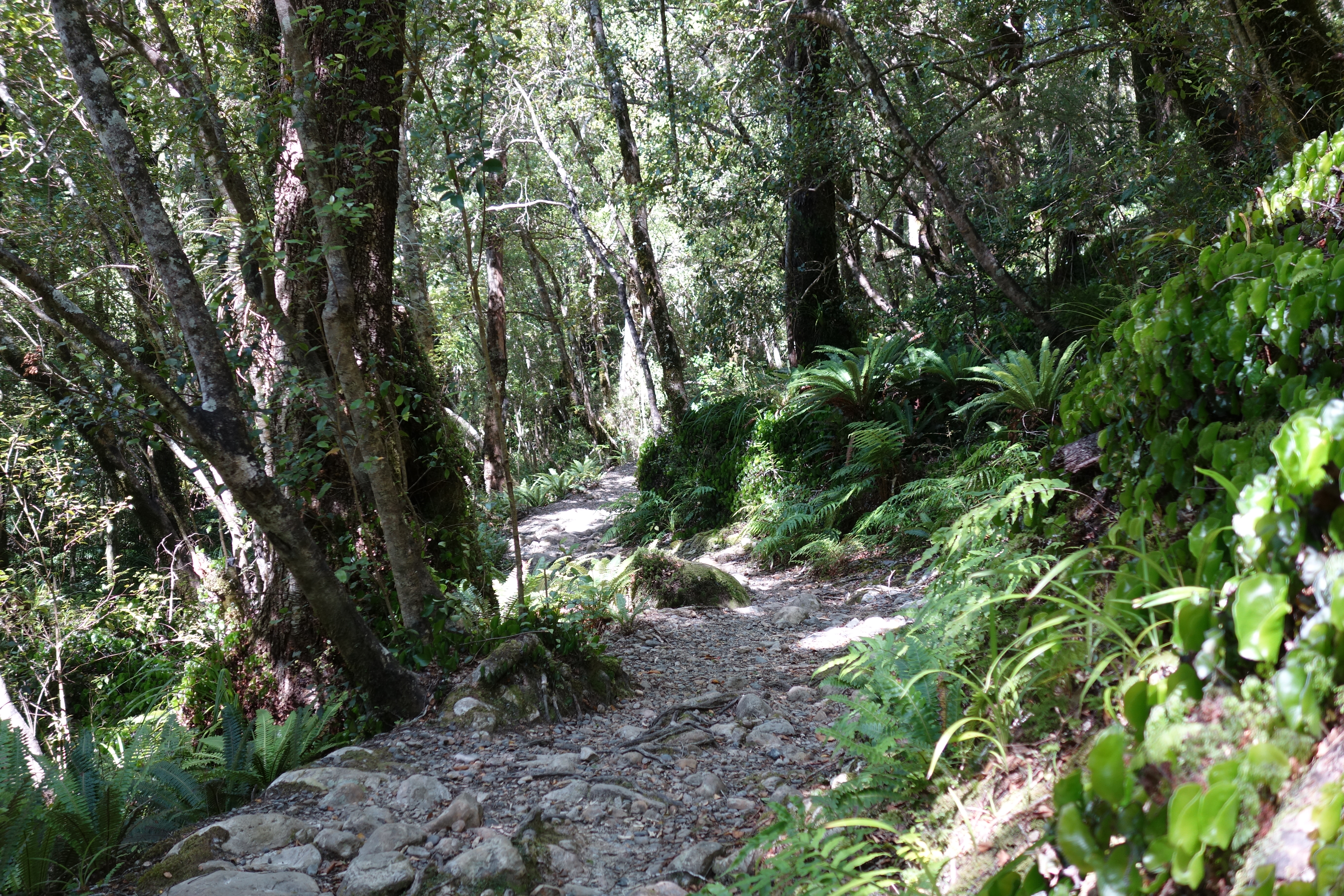 The track passes through some of the best mixed podocarp/broadleaf forest in the Tararua Range. Rimu, miro and northern rata tower over a canopy of kamahi, red beech and silver beech.