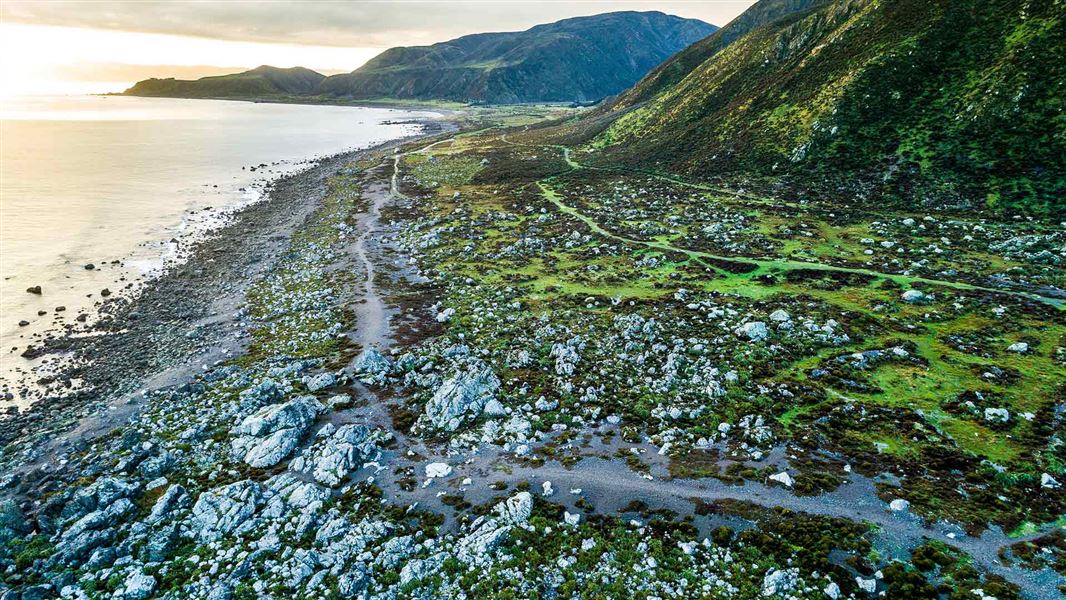 The name Turakirae tells us that this is the headland (rae) where the Rimutaka Range comes down (turaki) to the sea. Turakirae Head Scientific Reserve provides valuable habitat for a variety of plants and wildlife, most notably seals, and preserves a well-defined sequence of earthquake-raised beaches.