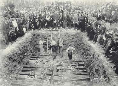 Mass burial at Stillwater for 33 victims of the disaster - many families couldn't afford a grave