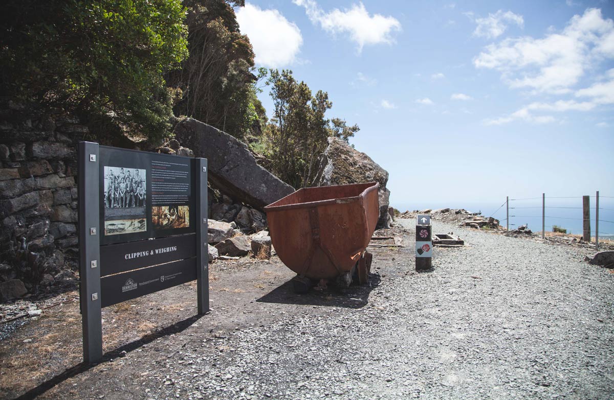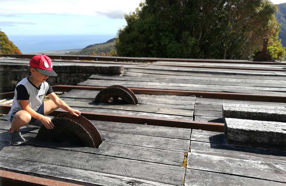 There is no vehicle access along Conns Creek Road to the bottom of the incline. The road is open for a walking access. The road leads visitors to the historic lower section of the Denniston aerial ropeway and historic Conns Creek coal loading yards.