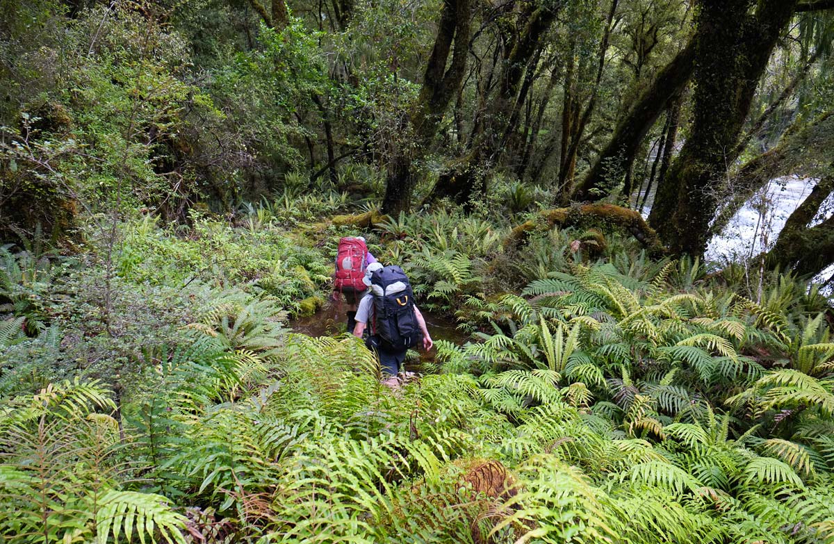 The initial section of the track to Blowfly Hut detours from the original route to avoid a lowland swampy area around Windbag Creek. Once past the swampy area, it soon picks up the original line.