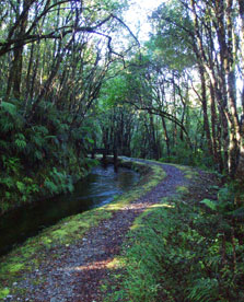 The Kaniere water race was initially built in 1875 to supply water for gold mining claims and later to generate power for gold mines and domestic supply.