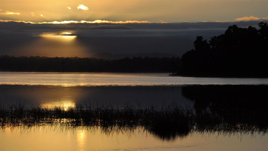 The surrounding bush is a mix of podocarps and hardwood species such as miro, matai, totara, rimu and kahikatea closer to the lake, with sub-canopy species such as kamahi, mahoe and quintinia being common. These tree species provide an important seasonal food supply for some of the birds found here; parakeets, tui, bellbird, pigeon.