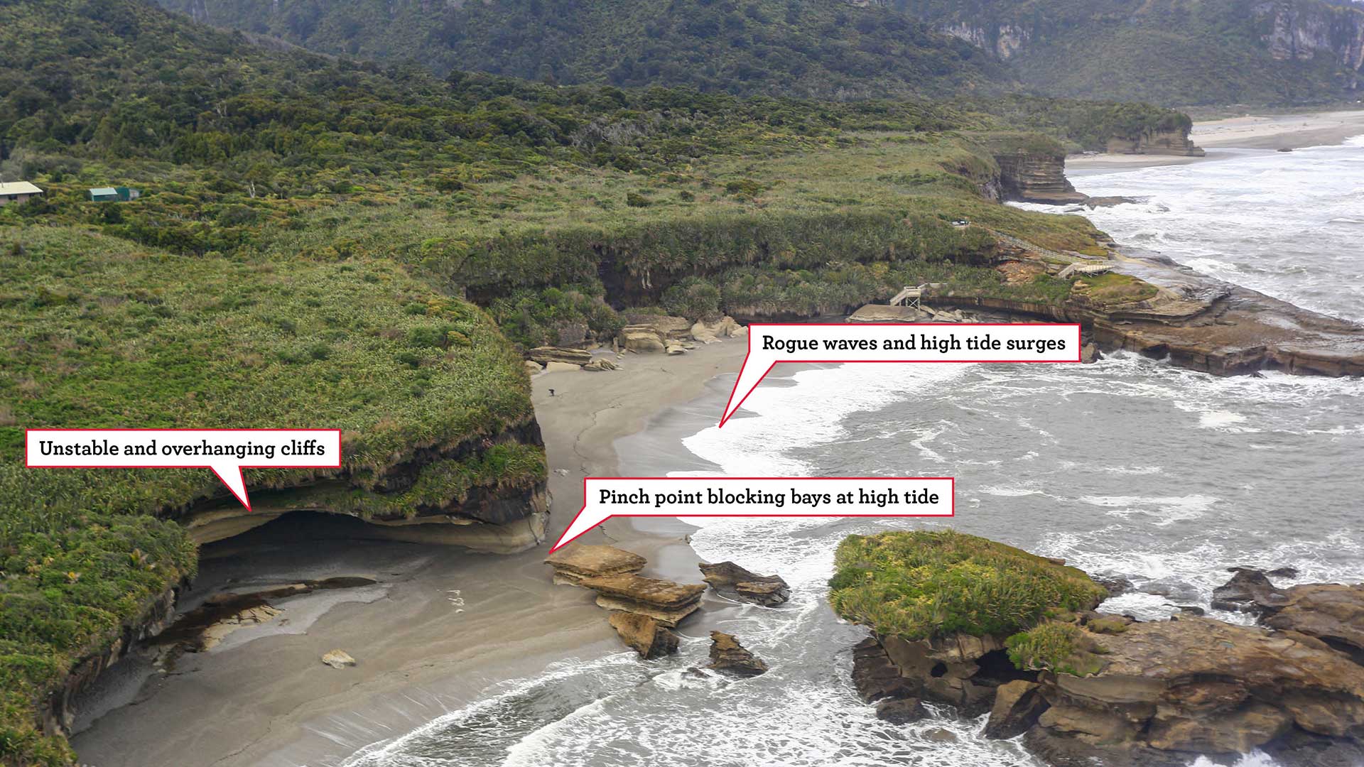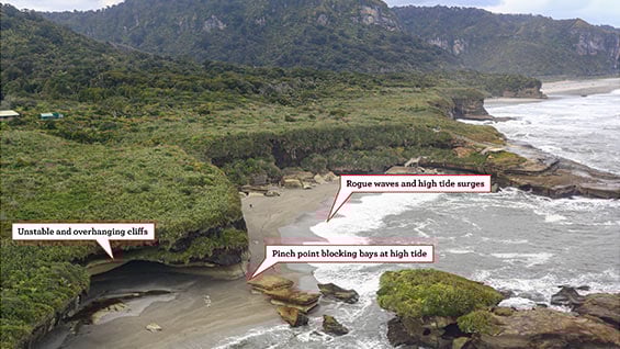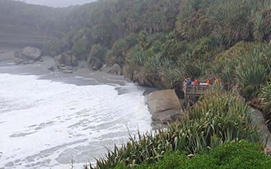 At higher tide times, we advise not going onto the beach and enjoying the coastline from a viewing platform at the end of the track instead. Find a tide forecast for Greymouth here.