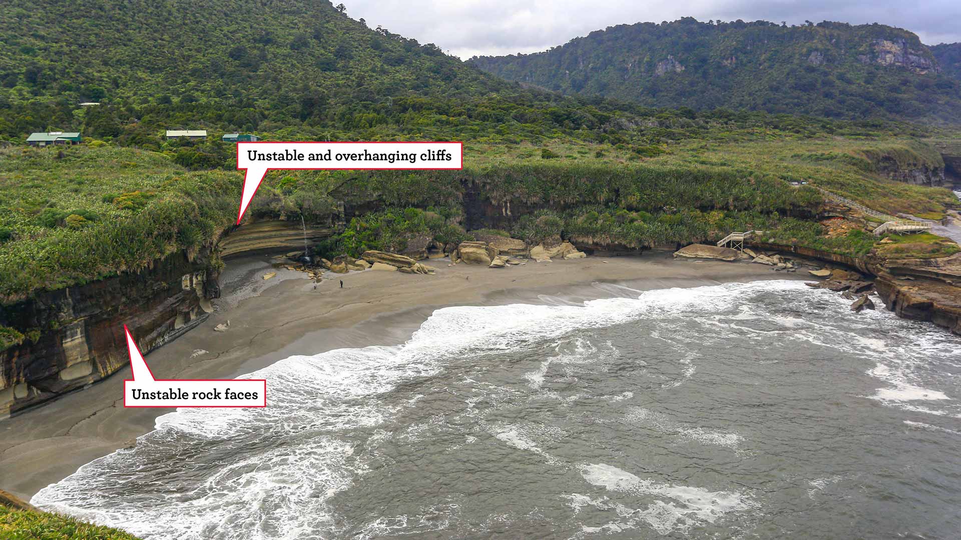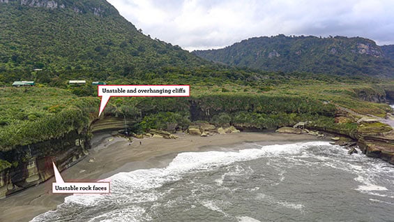 - do not stand under the overhangs or close to the cliff faces. Large rocks can fall and sections can collapse at any time