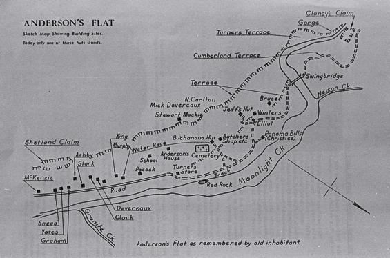 George Moonlight proved to be an excellent gold prospector, and his name was given to the area along with several other places throughout New Zealand. The Anderson's flat area was named after the Anderson family, one of a number of families that made a good living near the flat where the Moonlight Pack Track begins.