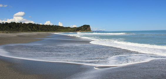 The beaches are gravelly and the seabed muddy - a result of runoff from the Waiho River and other waterways in this area, which are constantly fed by glacial flow through thick rainforest. Extreme rainfall events are reasonably common here.