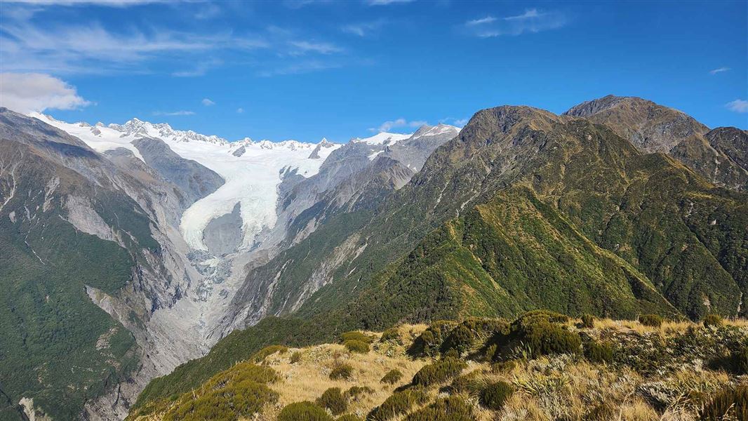 The next part of the track is a steady climb to the forest through to the sub-alpine scrub zone, then alpine meadows and herb fields. You will be rewarded with stunning views of glaciers, mountains and seascapes at various viewpoints along the way to the Alex Knob summit.