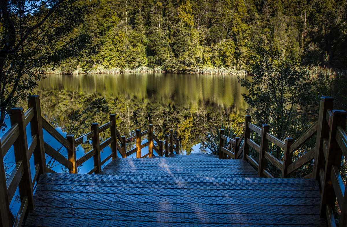 After walking to the Jetty Viewpoint, continue further around the lake. You will find a similarly magnificent mountain reflection shrouded in native foliage at the View of Views at the top end of the lake, and again at Reflection Island.