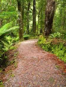 Lake Wombat is a fern-lined walk which climbs steadily from the car park through rimu forest to a peaceful lake.