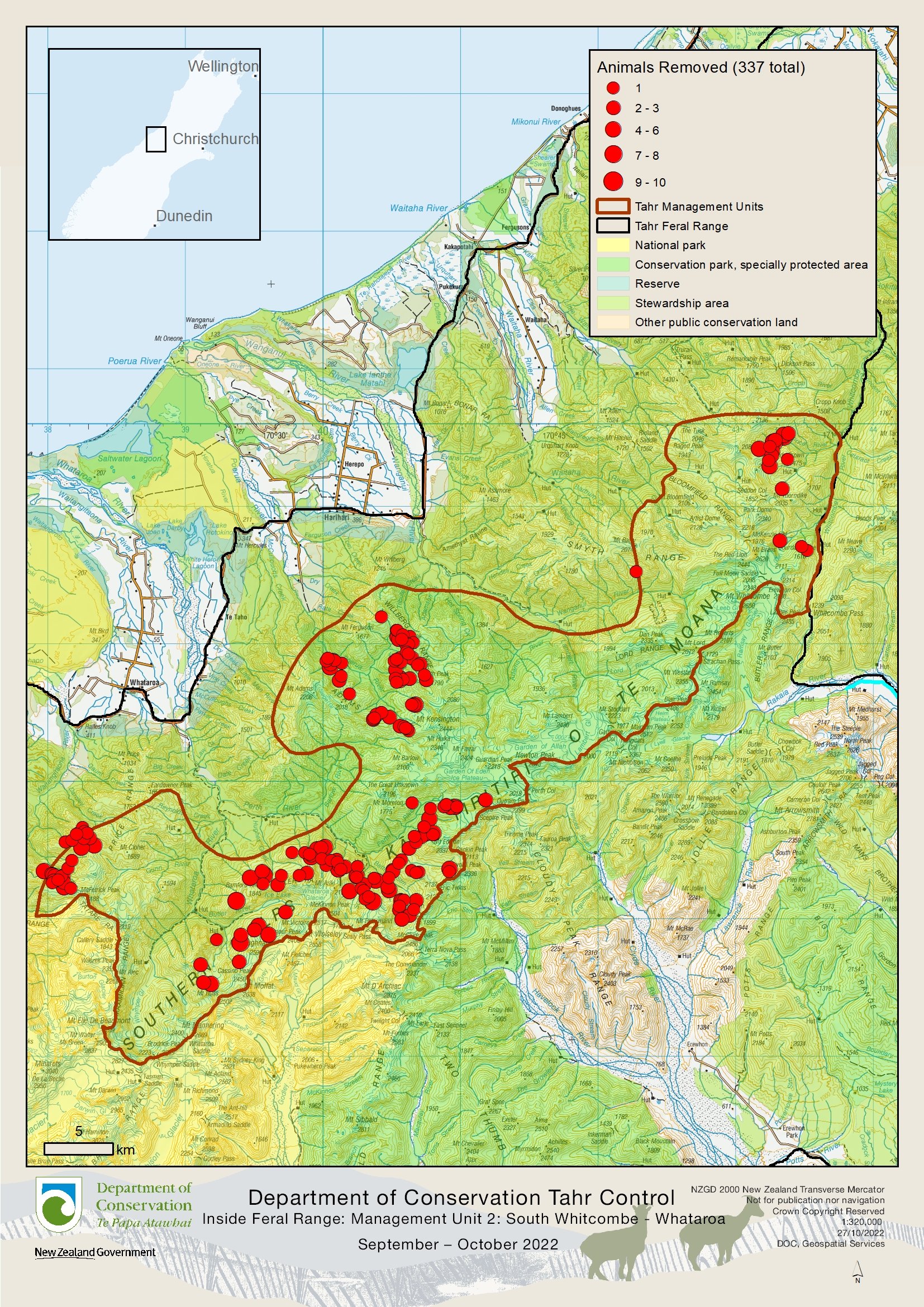 From approximately late-July this page will be periodically updated with maps of official control and with observations of identifiable male tahr in management units outside the national parks.