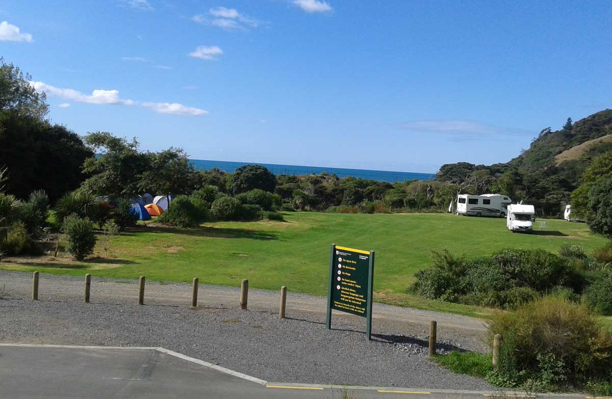 From Coromandel take the Colville Road for 22 km to Whangaahei Junction, turn right into Port Charles Road, then right into Waikawau Beach Road and follow for 5 km to the camp.