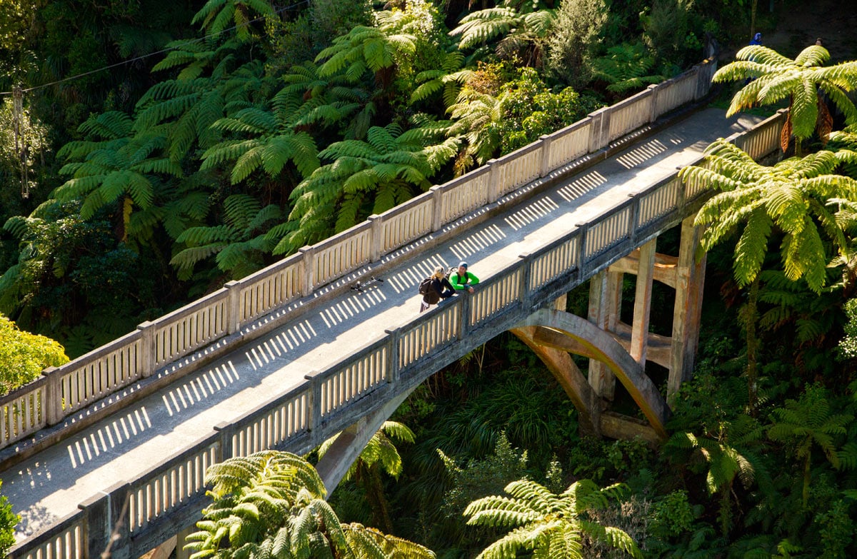Continue your trip downstream past the Mangapurua Landing, where you can stop and walk to the iconic Bridge to Nowhere. The Bridge to Nowhere Walk (3km, 1 hour 30 mins return, shared use with cyclists) leads to an abandoned bridge, one of the few remainders of the Mangapurua Valley farm settlement.